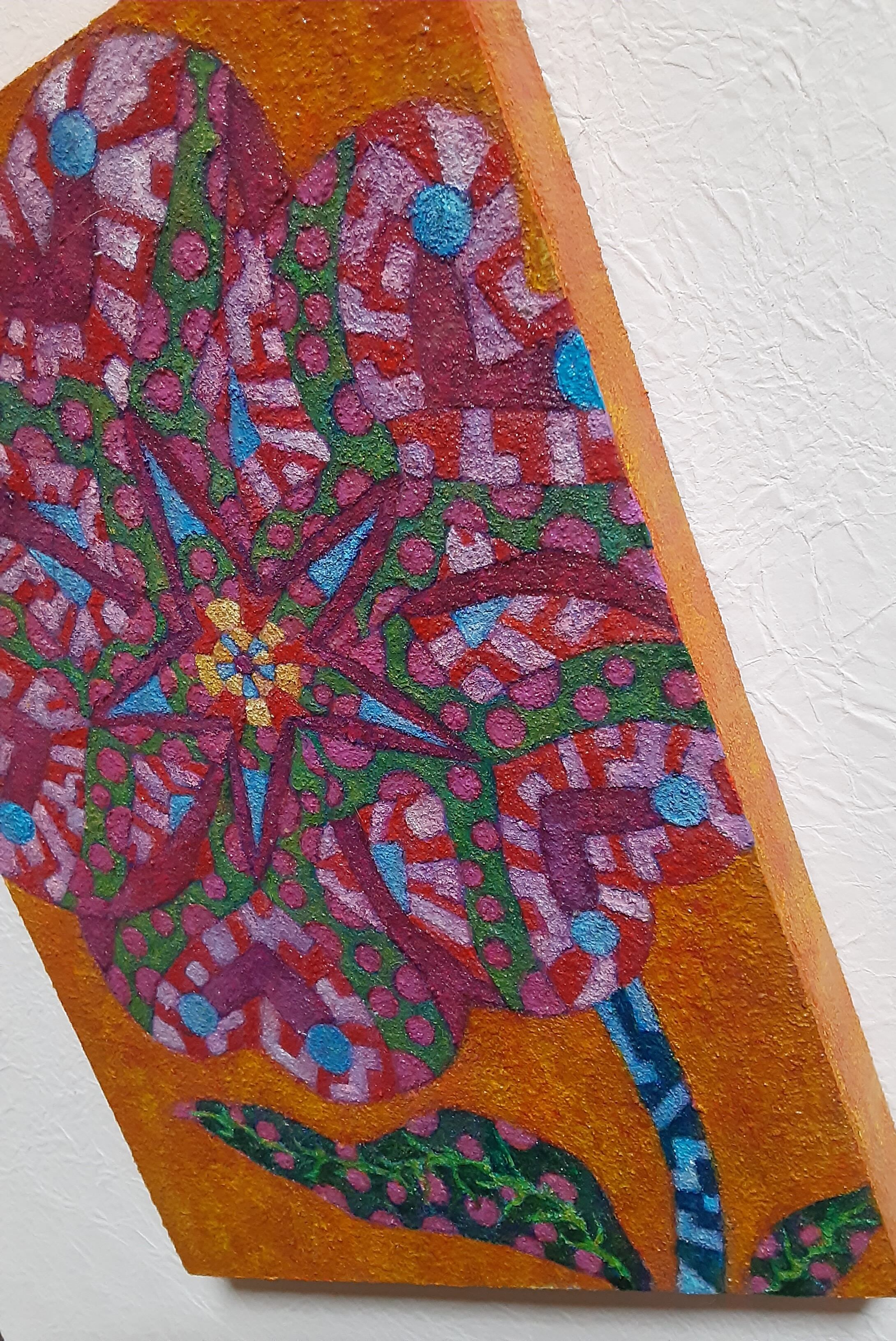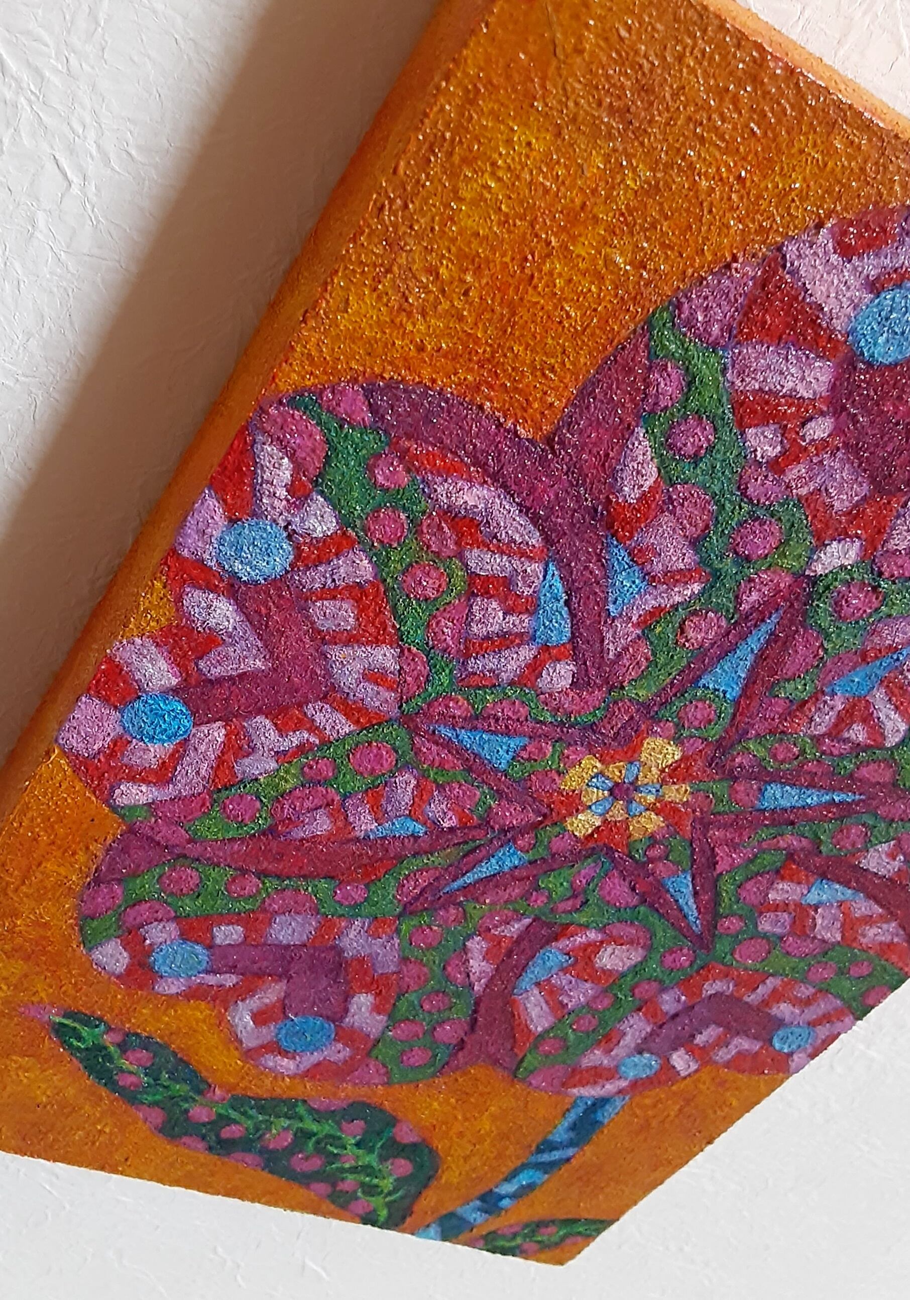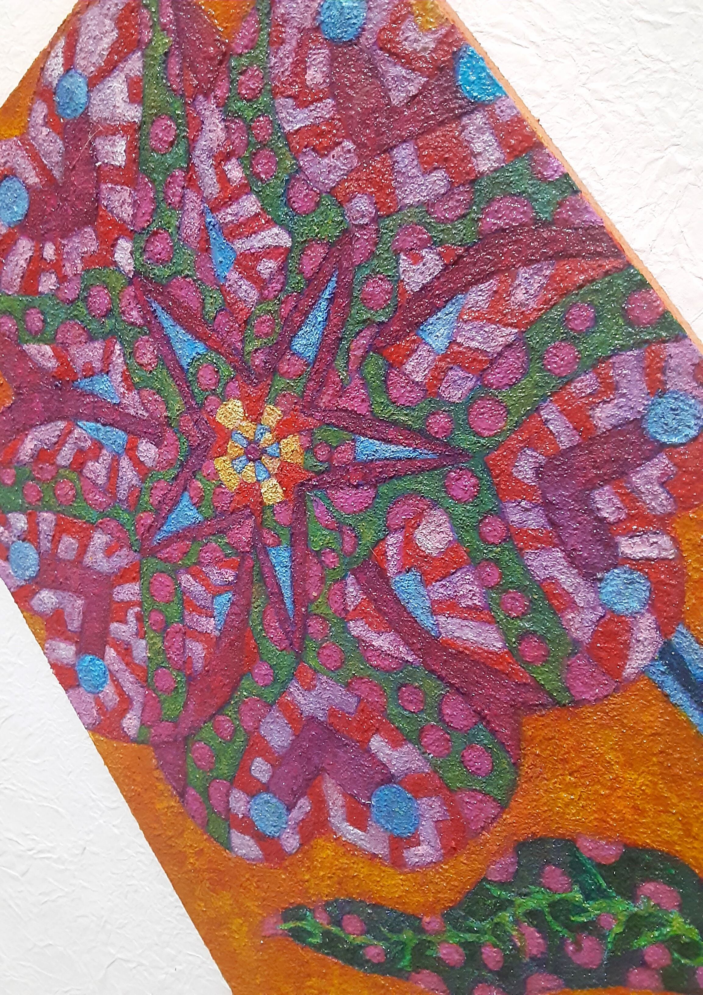 模様を描いている時の私は、論理も思考も存在しない、無意識の領域に居ます。だからこそ、そこから導き出されている線・形・色には、自分自身でも知り得ない、剥き出しの心が確実に存在しています。