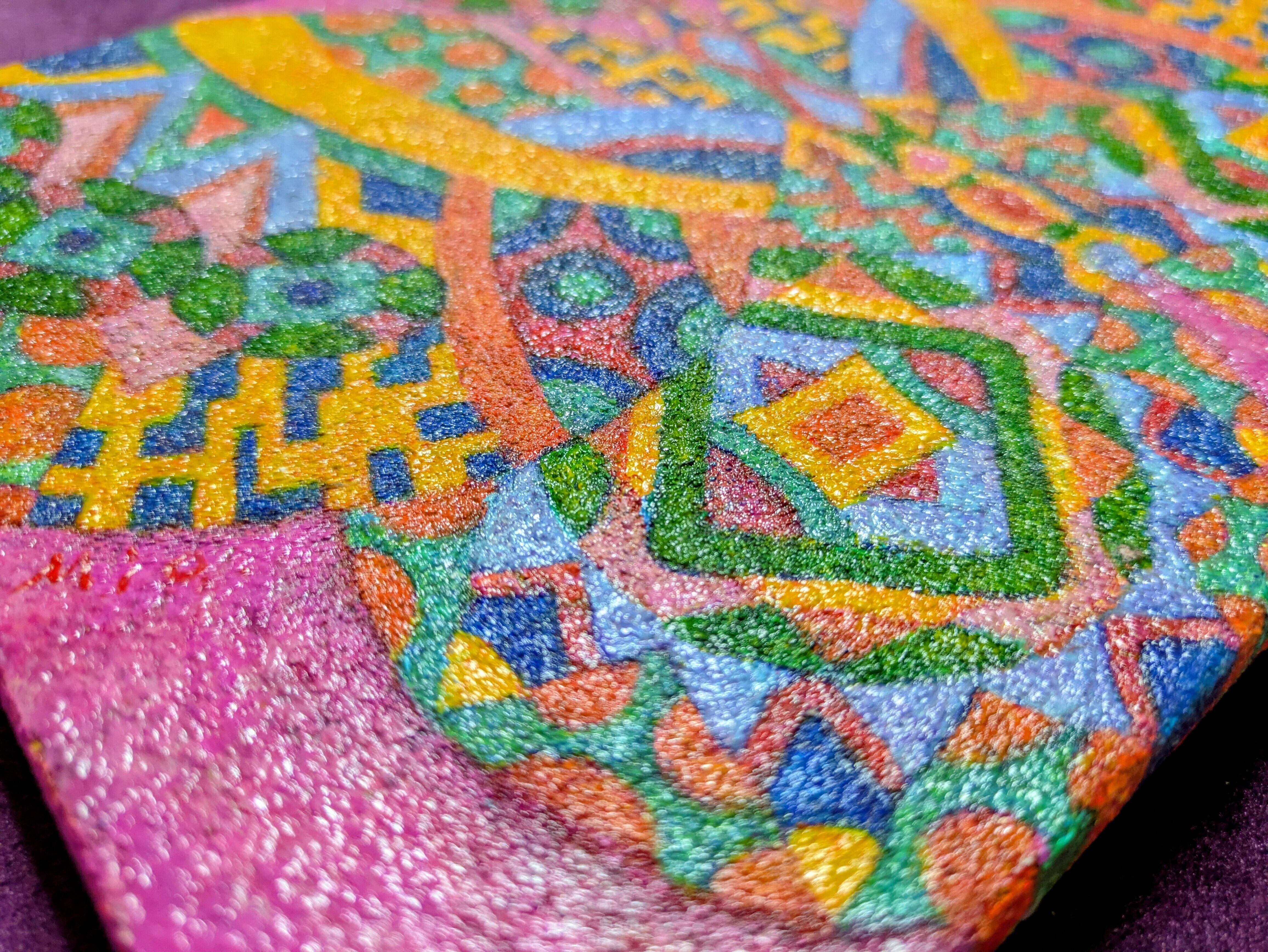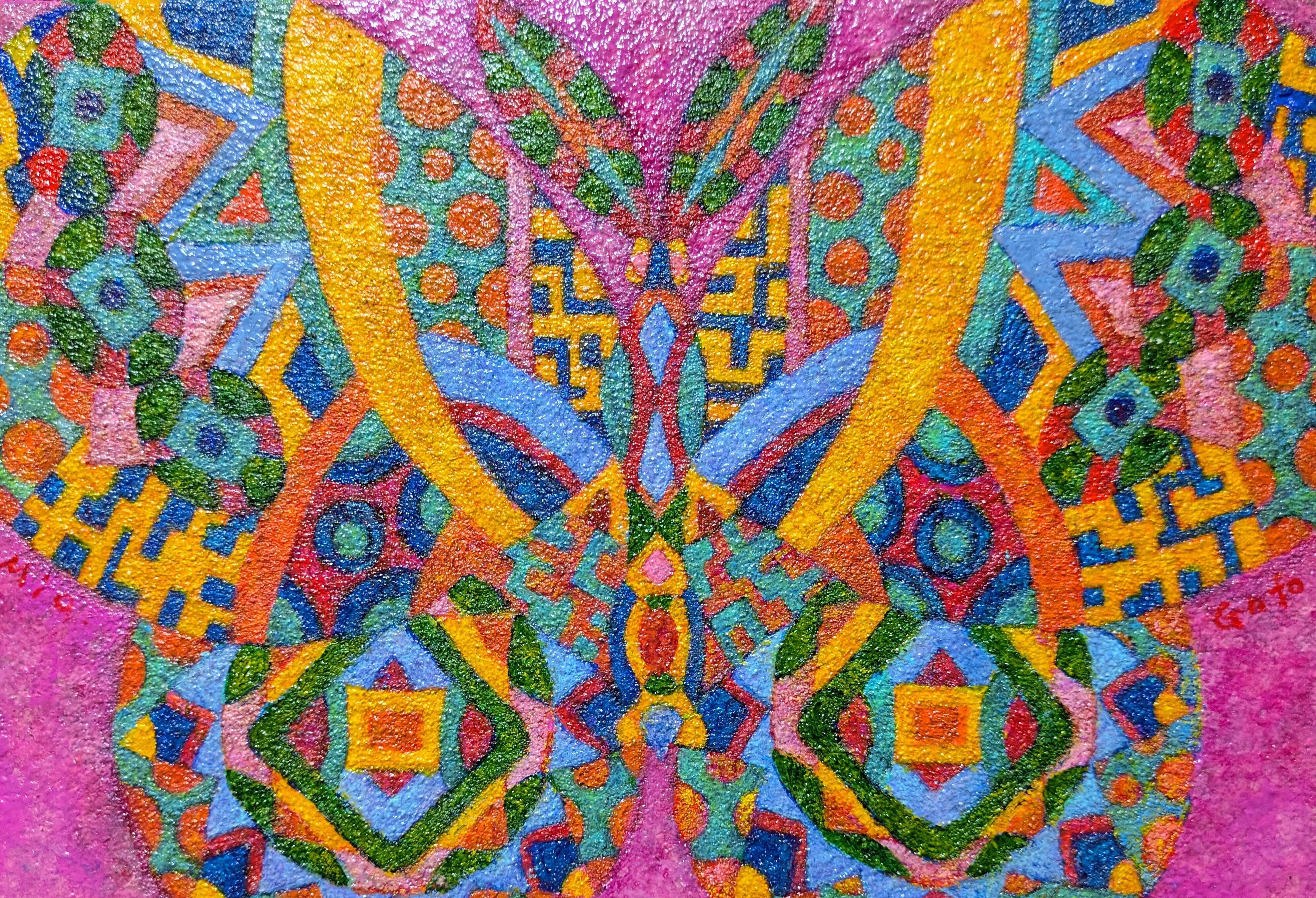 模様を描いている時の私は、論理も思考も存在しない、無意識の領域に居ます。だからこそ、そこから導き出されている線・形・色には、自分自身でも知り得ない、剥き出しの心が確実に存在しています。